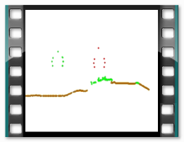 The next movie (90s, 7.5Mb, AVI format) presents the classified data as they are observed inside the helicopter. The image on the right shows the 3D model of the same data. Flight i nterface snapshot with LiDAR data classified and right-of-way measurement in real time |