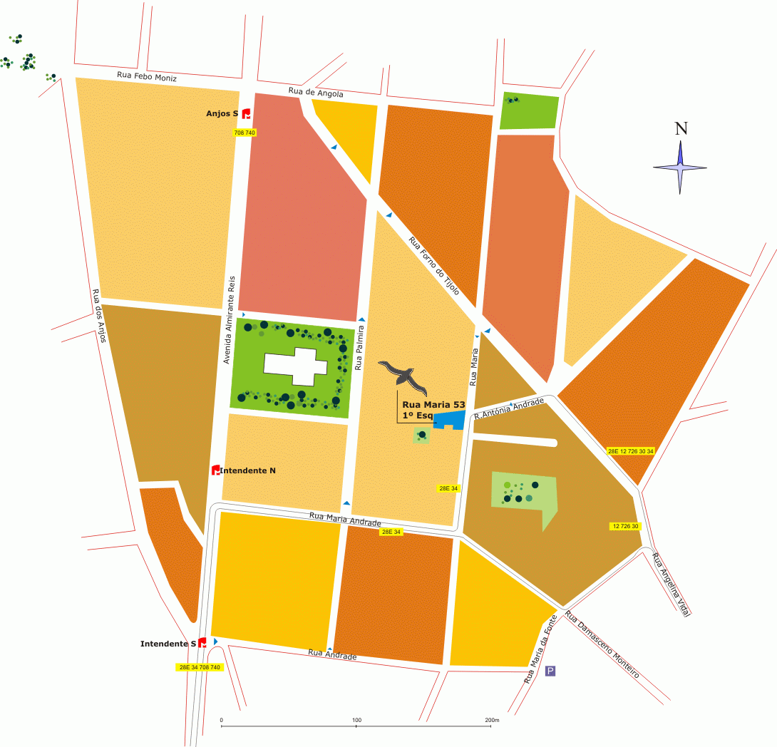 . Hay dos estaciones de la línea verde en las cercanías de la oficina: Intendente e Anjos (véase el mapa de la red de Metro más abajo) . La salida más cercana es la puerta norte de la estación Intendente (que tiene escaleras mecánicas ) y dista solo 290 metros de la puerta de la oficina, mientras que la salida sur de la estación Anjos está a 400 metros de distáncia.